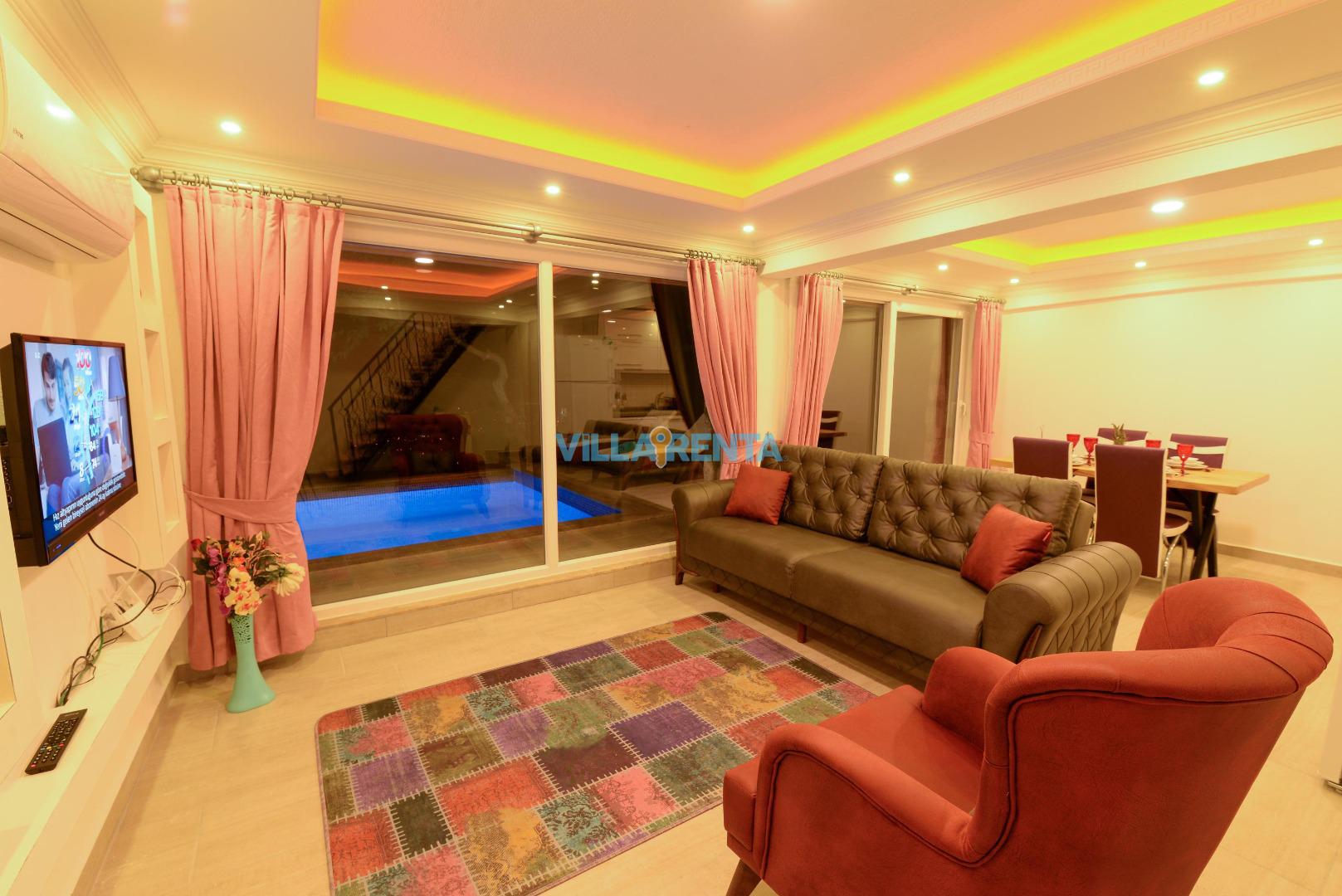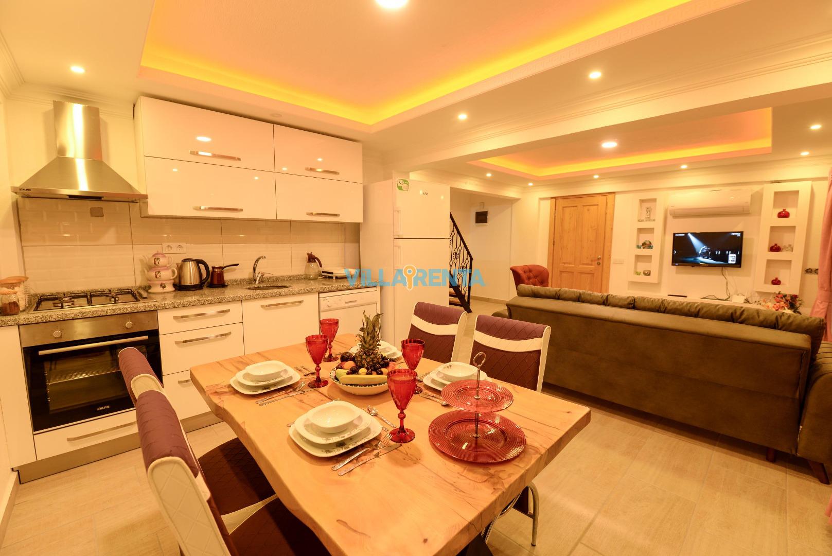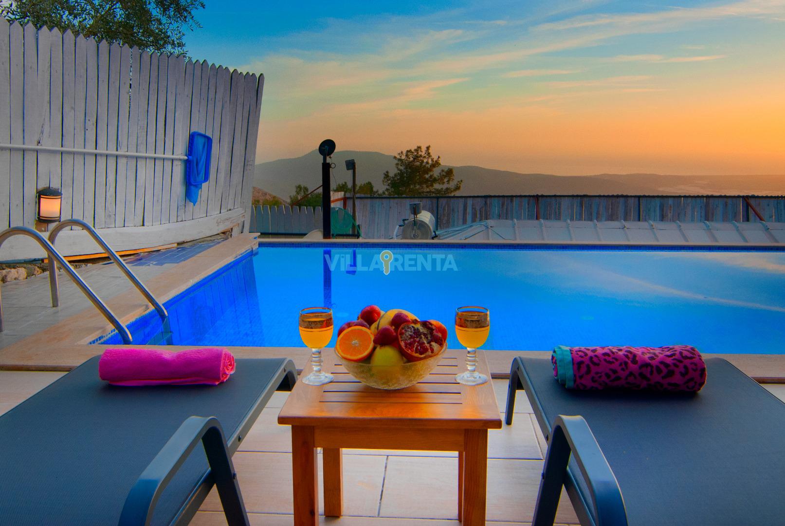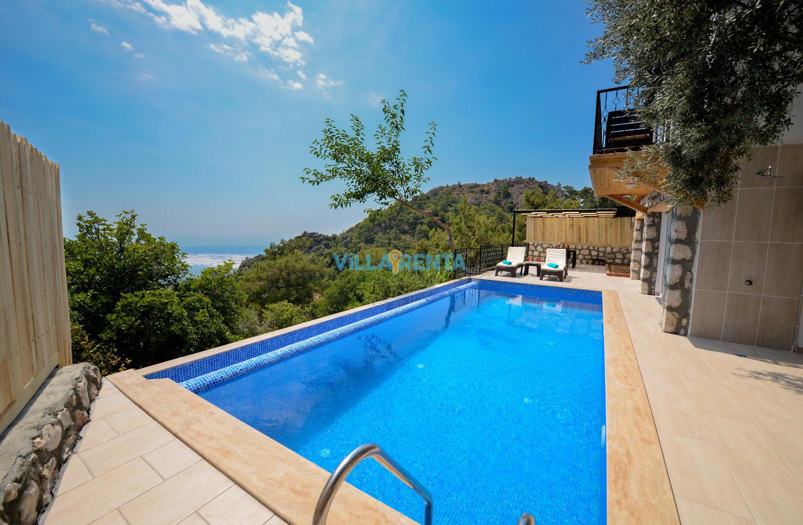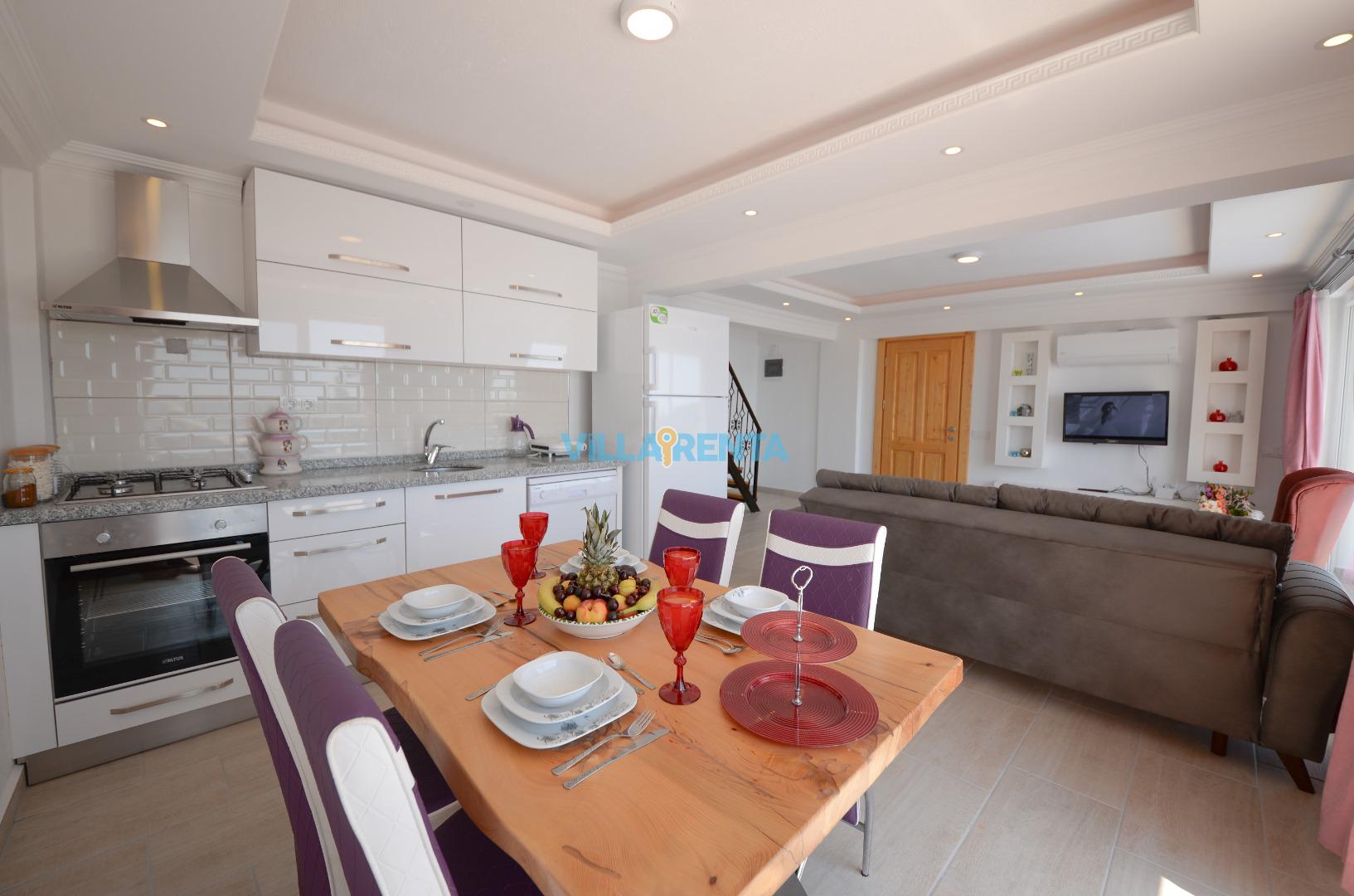 Rising with modern architecture in the unique nature of Kalkan, Lapaz, Villa Saten is designed for those seeking peace at the summit, away from the hustle and bustle of the city. With 2 bedrooms and a capacity for 4 guests, our villa makes a difference with its spacious living areas and the luxury amenities it offers.