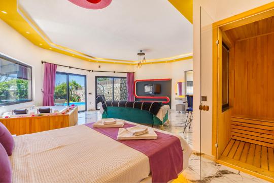 Located in the serene Üzümlü hills of Kalkan, Villa Yek offers a premium 1-bedroom experience designed for relaxation and fun. With its private spa facilities and spacious outdoor areas, it provides a high-end Mediterranean getaway.